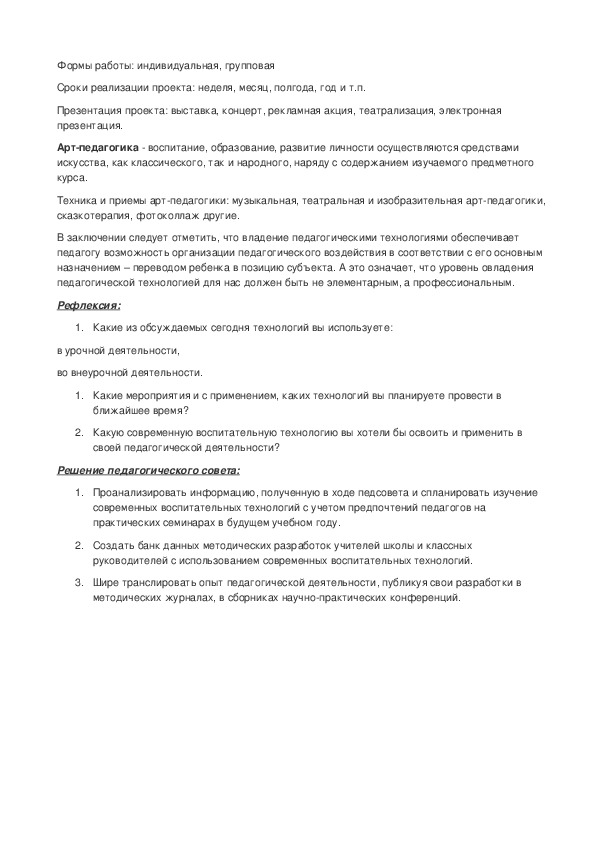 Одним из возможных путей совершенствования воспитательной работы в образовательном учреждении является освоение педагогами – практиками продуктивных педагогических идей. Чтобы повысить качество деятельности всех субъектов воспитания, участникам воспитательного процесса нужны глубокие знания о технологиях социально-педагогической и воспитательной работы.