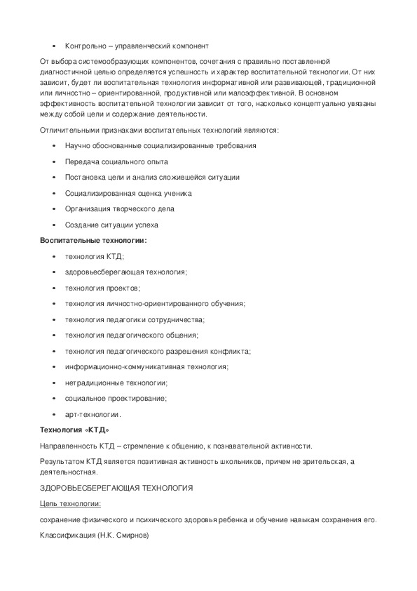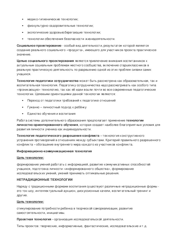 2. Теоретическая часть: «Классификация современных воспитательных технологий»