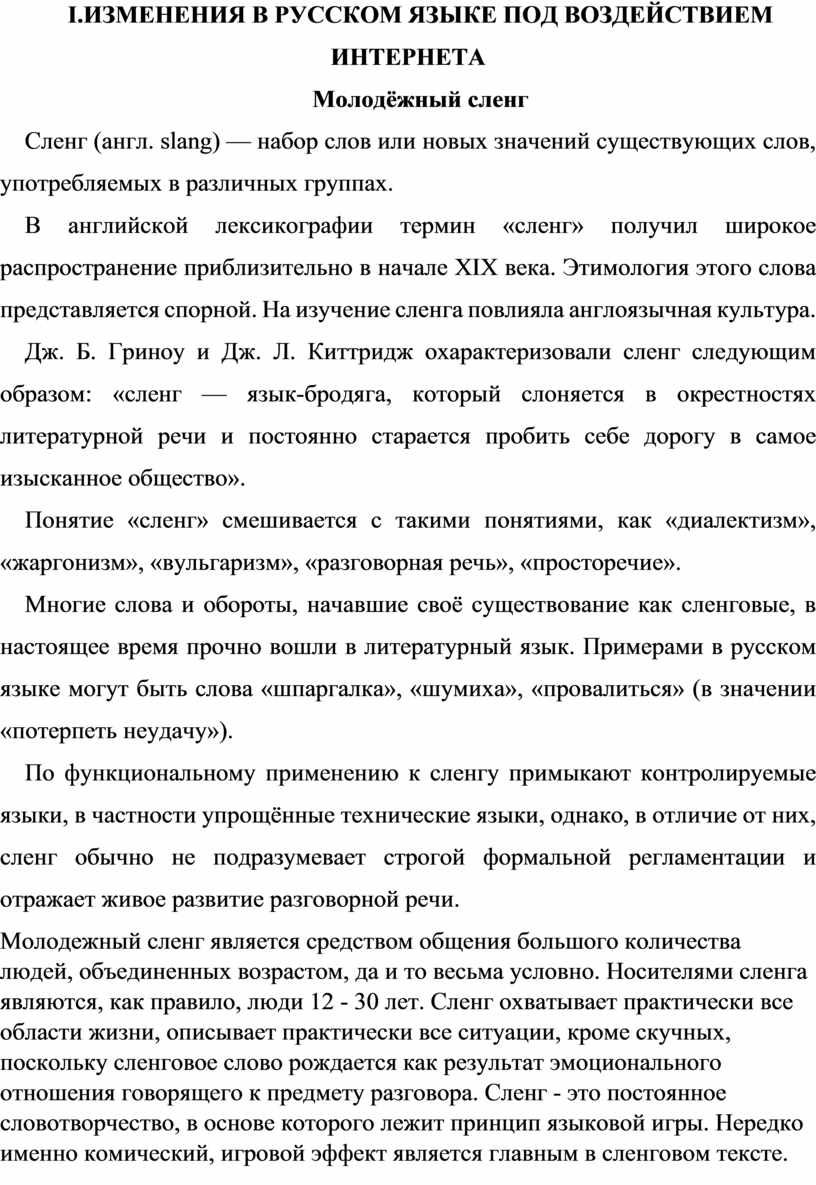 I.ИЗМЕНЕНИЯ В РУССКОМ ЯЗЫКЕ ПОД ВОЗДЕЙСТВИЕМ ИНТЕРНЕТА