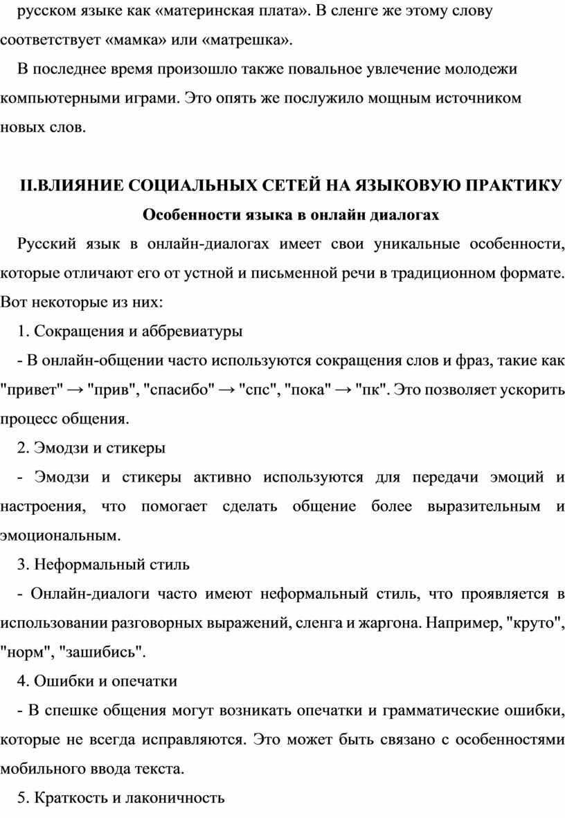 II.ВЛИЯНИЕ СОЦИАЛЬНЫХ СЕТЕЙ НА ЯЗЫКОВУЮ ПРАКТИКУ