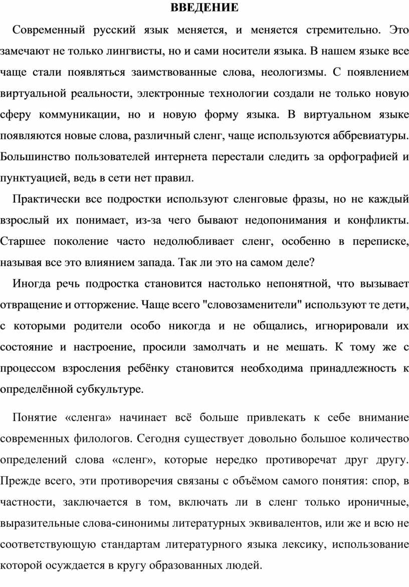Современный русский язык меняется, и меняется стремительно. Это замечают не только лингвисты, но и сами носители языка. В нашем языке все чаще стали появляться заимствованные слова, неологизмы. С появлением виртуальной реальности, электронные технологии создали не только новую сферу коммуникации, но и новую форму языка. В виртуальном языке появляются новые слова, различный сленг, чаще используются аббревиатуры. Большинство пользователей интернета перестали следить за орфографией и пунктуацией, ведь в сети нет правил.