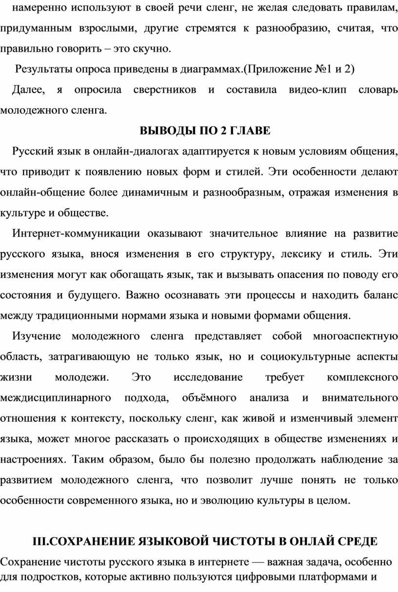 III.СОХРАНЕНИЕ ЯЗЫКОВОЙ ЧИСТОТЫ В ОНЛАЙ СРЕДЕ