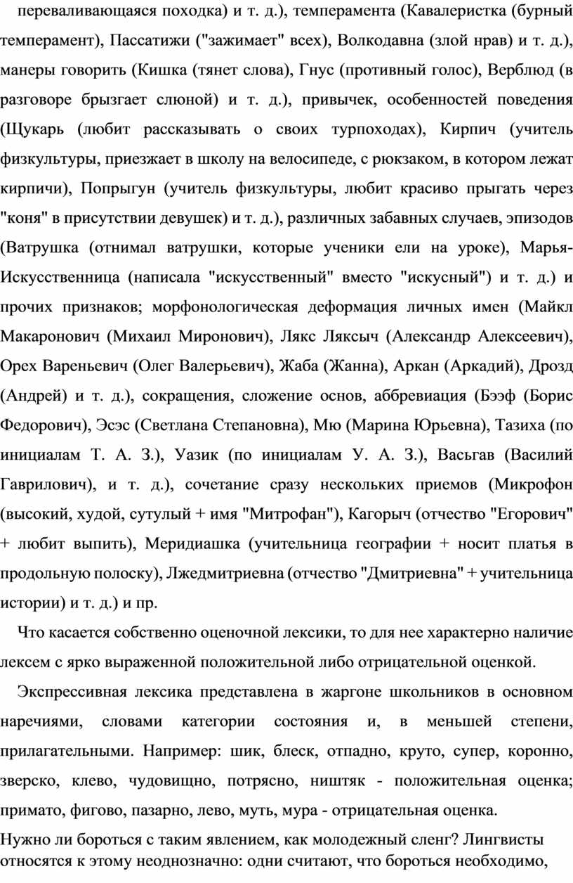 1) Главное в этом языковом явлении – отход от обыденности, игра, ирония, маска. Непринужденный молодежный сленг стремится уйти от скучного мира взрослых, родителей, учителей.