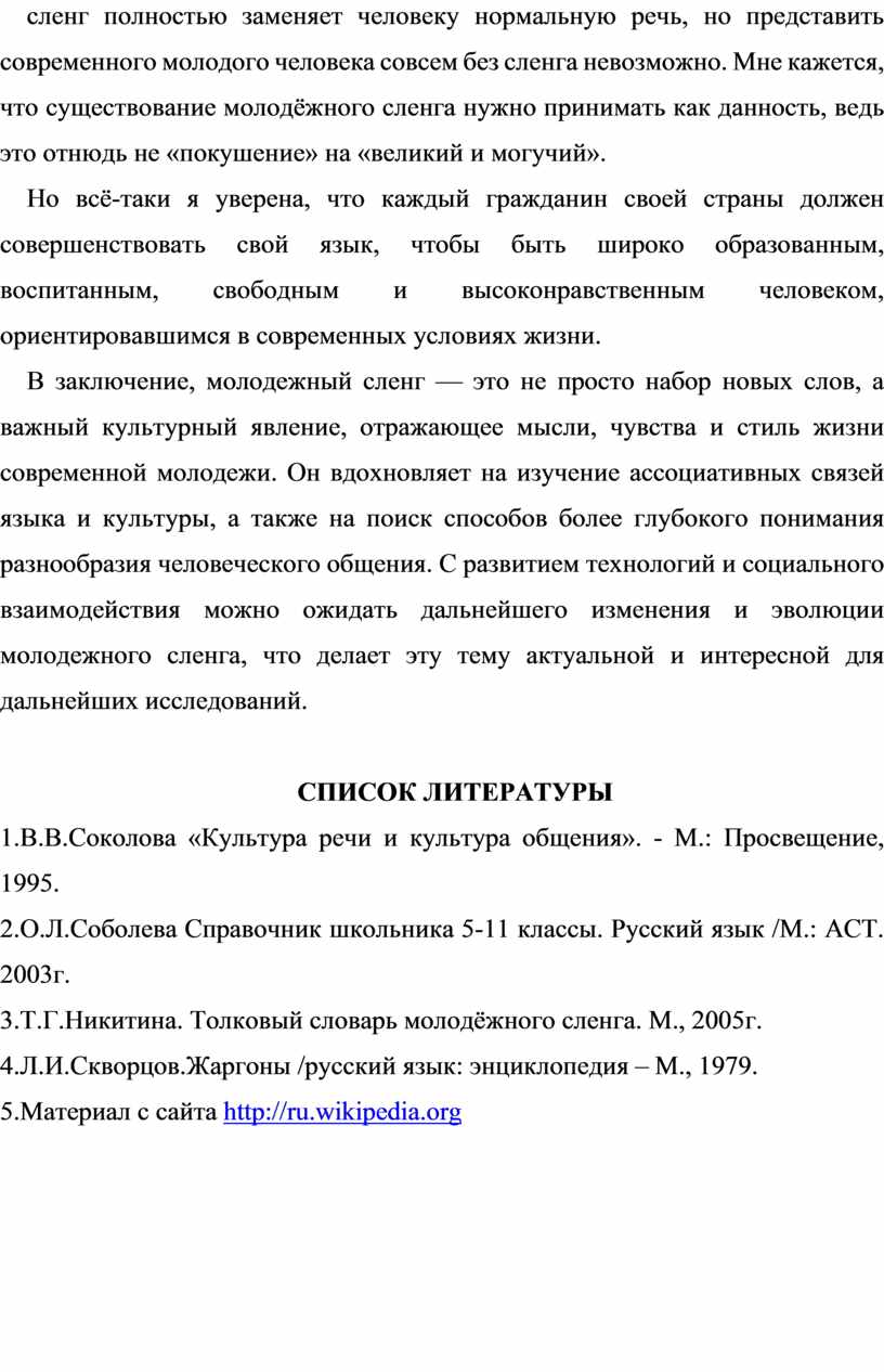 4.Л.И.Скворцов.Жаргоны /русский язык: энциклопедия – М., 1979.