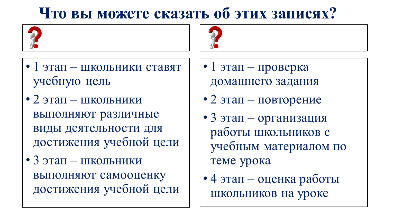 1 этап – школьники ставят учебную цель