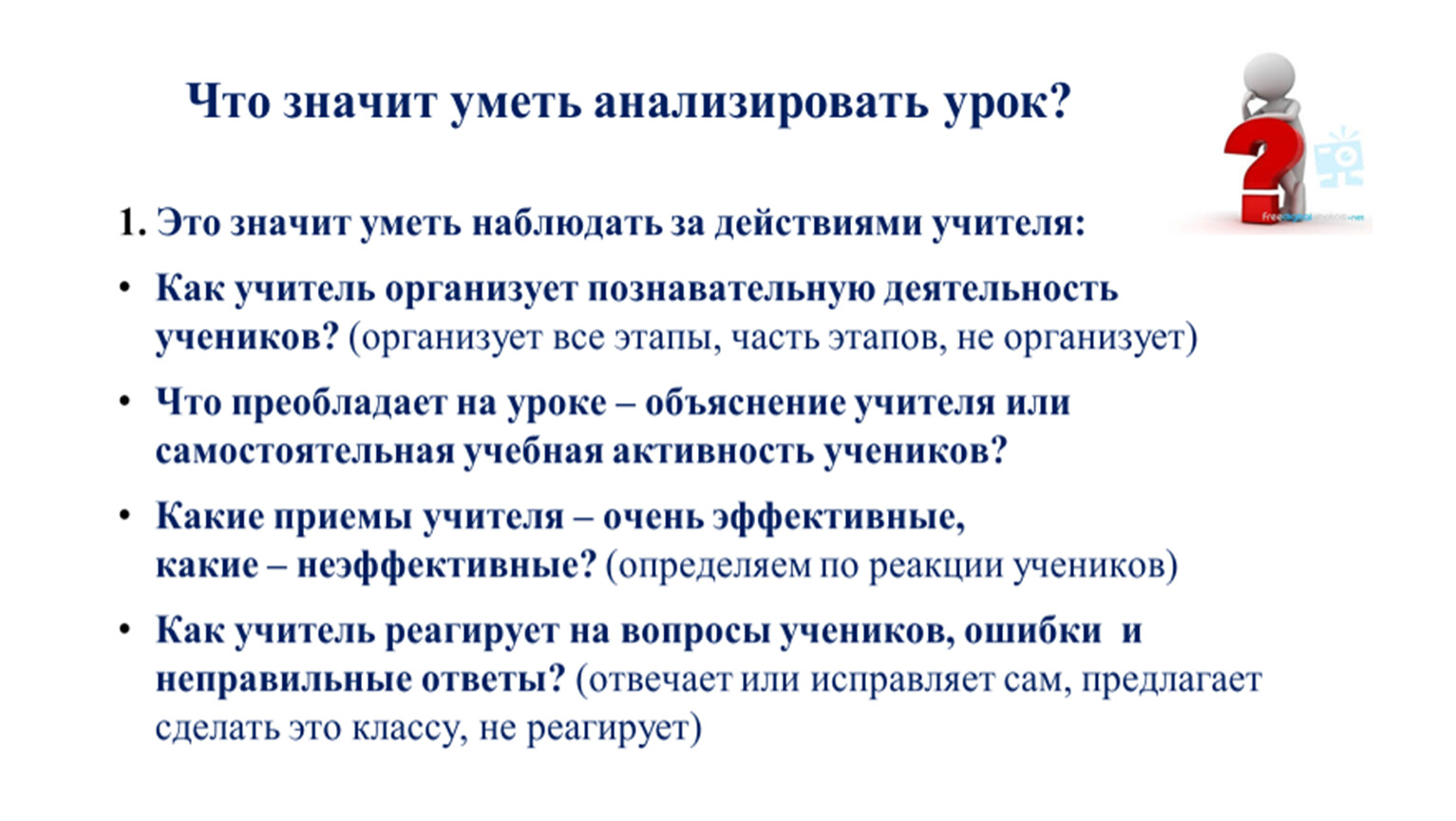Учитель систематически обучает детей осуществлять рефлексивное действие.