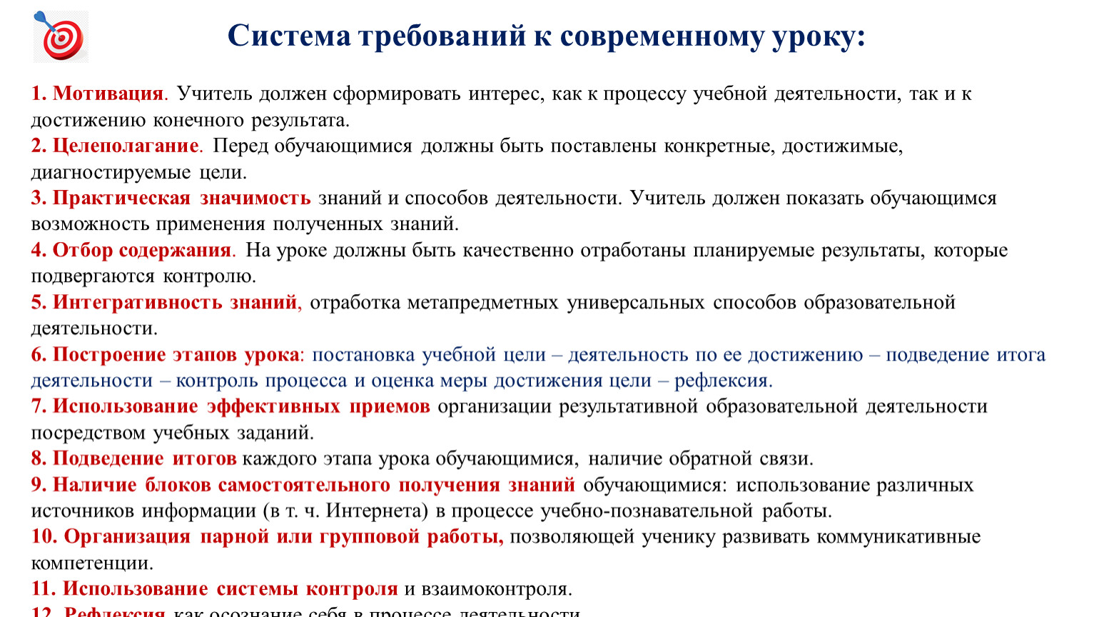 Система требований к современному уроку: