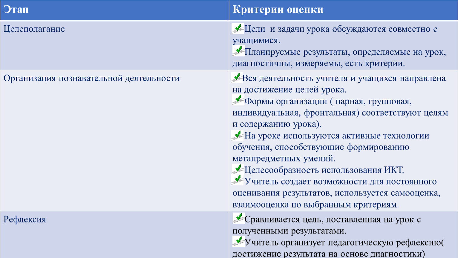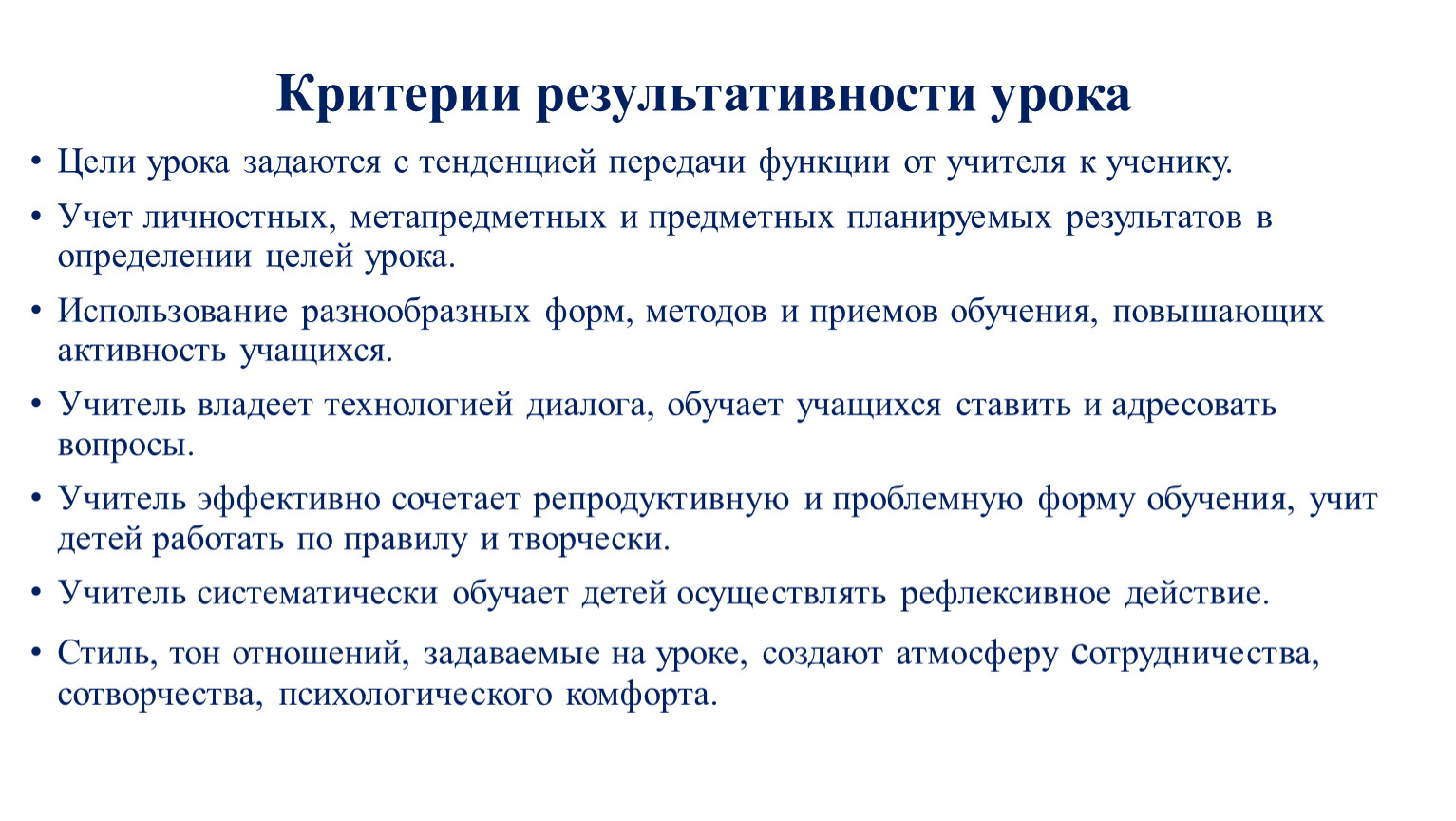 Критерии результативности урока