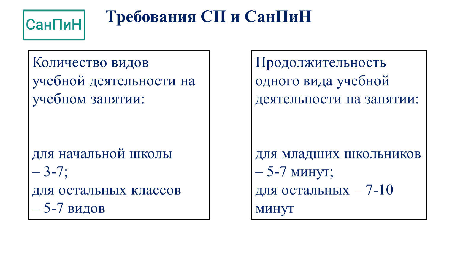 Требования СП и СанПиН
