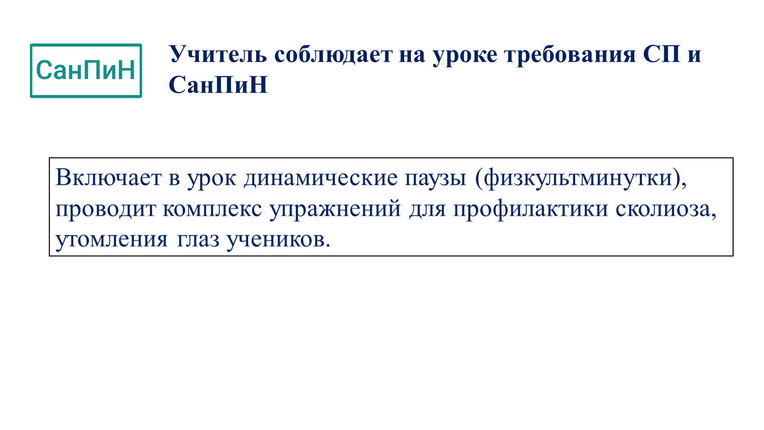 Учитель соблюдает на уроке требования СП и СанПиН