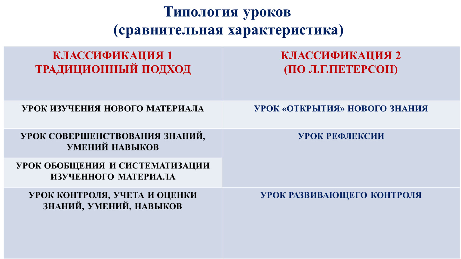 Типология уроков