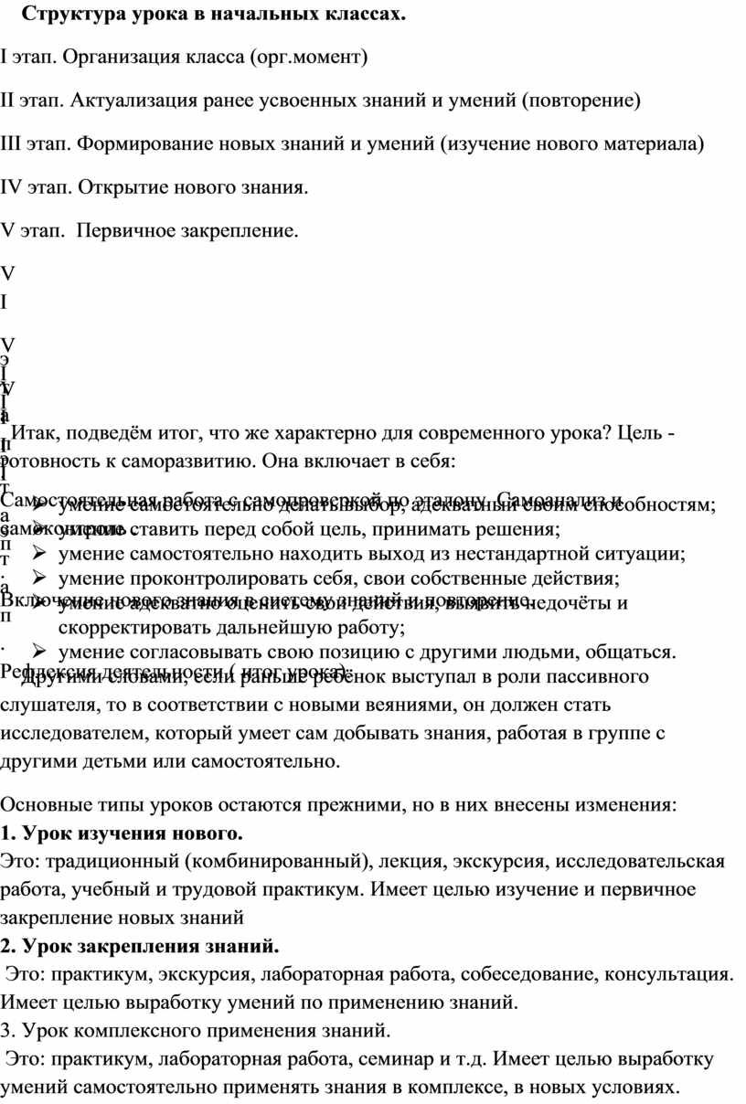 Какова же характеристика современного урока? Он включает в себя компоненты содержания: знания, умения, навыки, творческая деятельность, эмоционально- ценностный опыт; личностно-ориентированный, индивидуальный характер; создание условий для формирования компетенций ребенка; самостоятельная работа ученика, а не учителя; практический, деятельностный подход; использование образовательных технологий