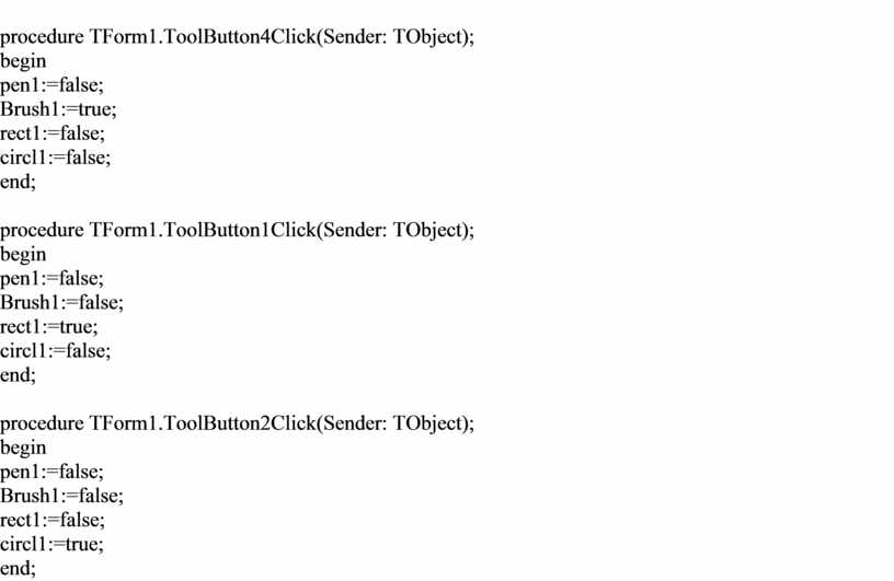 Опишем четыре логические переменный, отвечающие за нажатие кнопок с инструментами, т.е. за выбор инструмента для рисования: