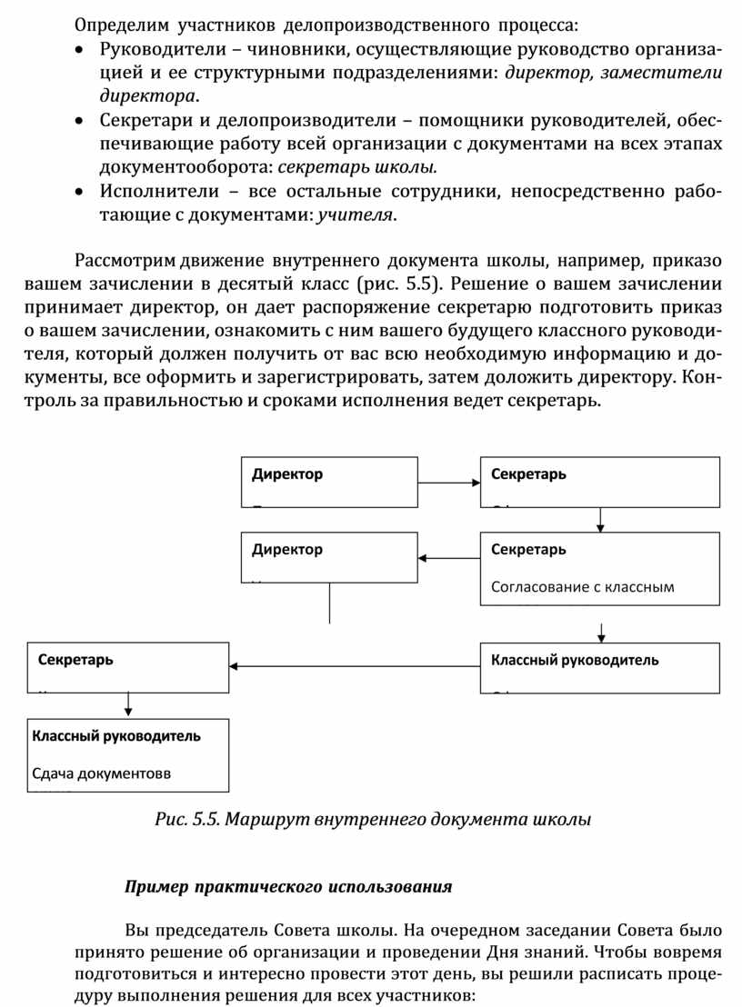 Рассмотрим движение внутреннего документа школы, например, приказ о вашем зачислении в десятый