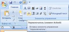 Берем переключатель (щелкаем на нем) и помещаем на слайд (щелкаем на слайде) – на слайде появляется переключатель.