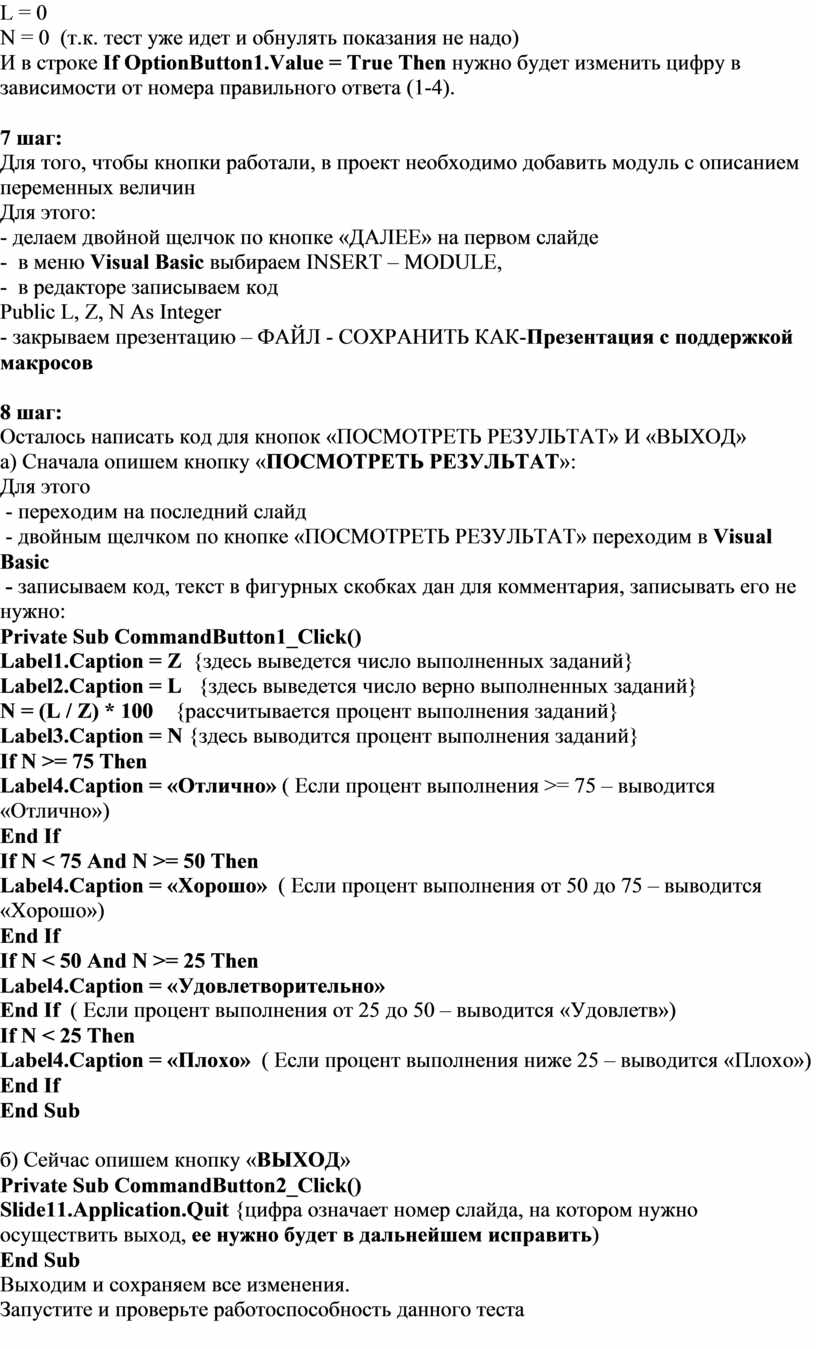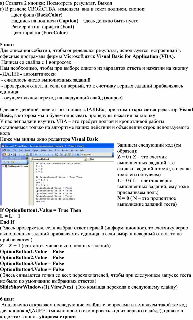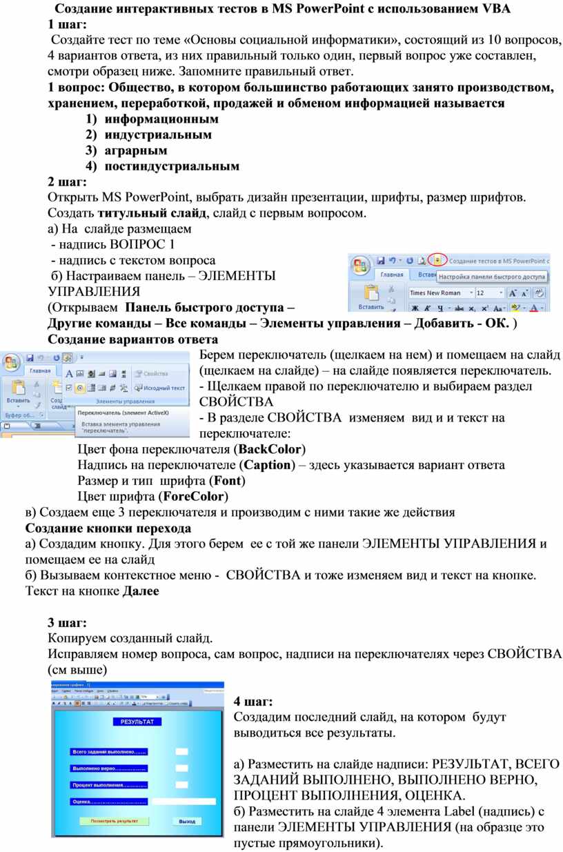 Создание интерактивных тестов в MS PowerPoint c использованием VBA