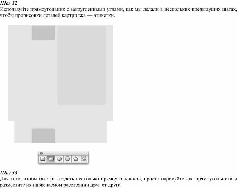 Используйте прямоугольник с закругленными углами, как мы делали в нескольких предыдущих шагах, чтобы прорисовки деталей картриджа — этикетки.
