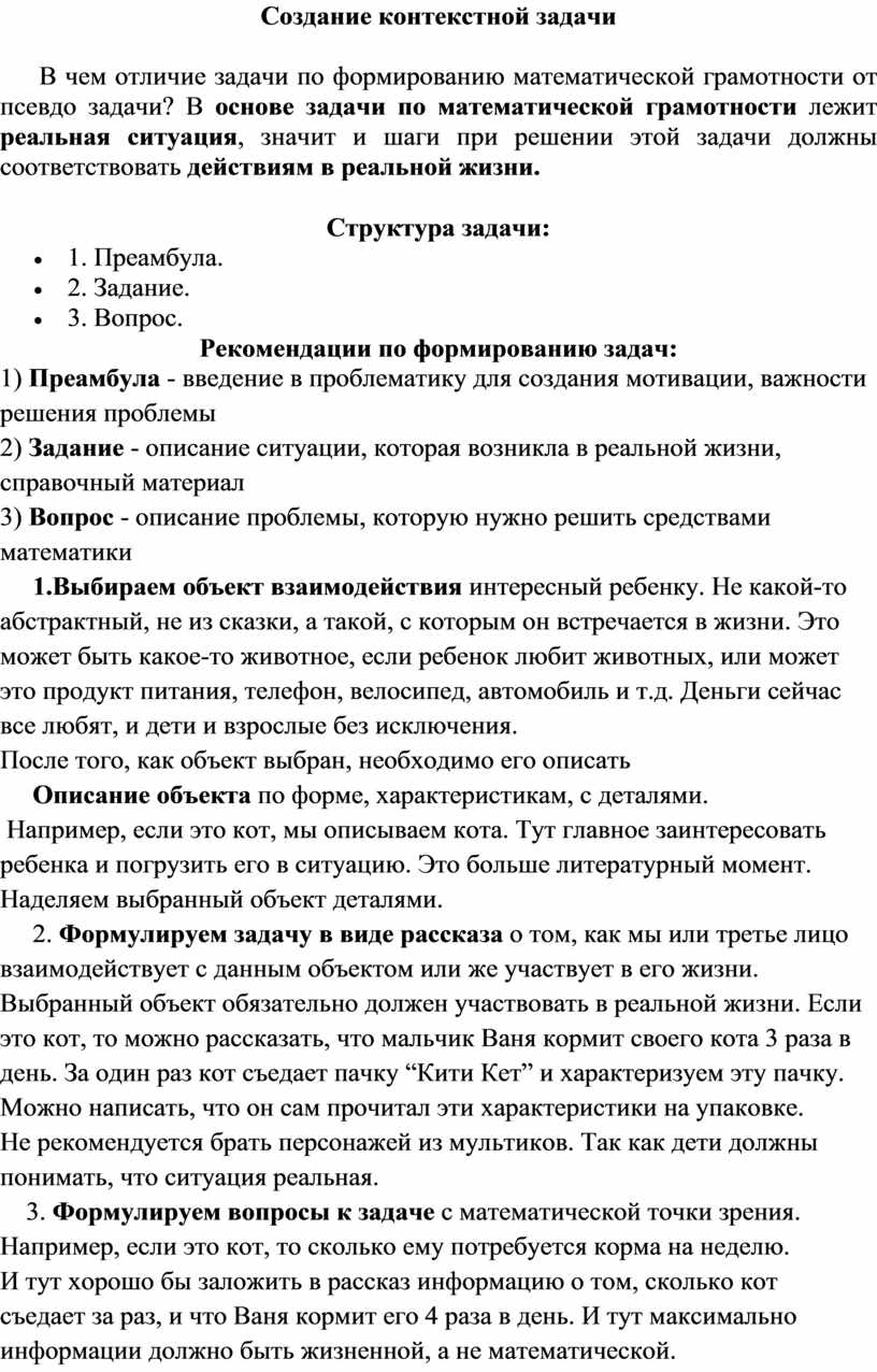 3. Формулируем вопросы к задаче с математической точки зрения. Например, если это кот, то сколько ему потребуется корма на неделю.