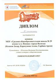 Член группы по апробации материалов учебного пособия «Герои Вологодчины» |