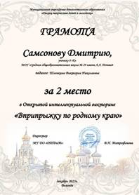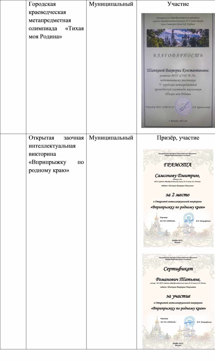 -Городская полипредметная краеведческая олимпиада «Тихая моя Родина» (организатор МОУ «СОШ 15)