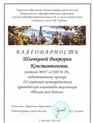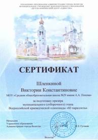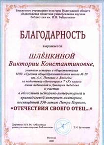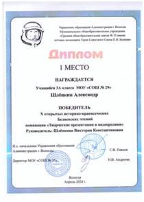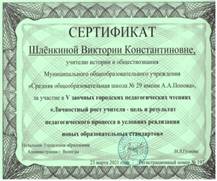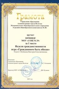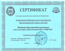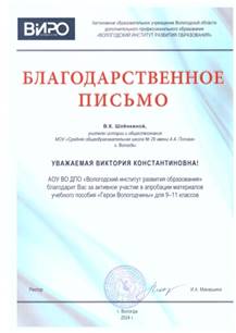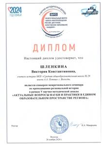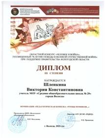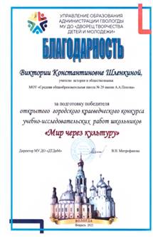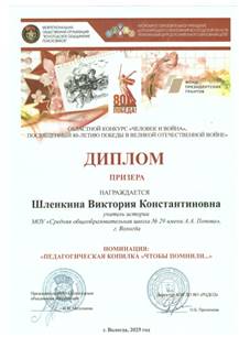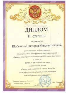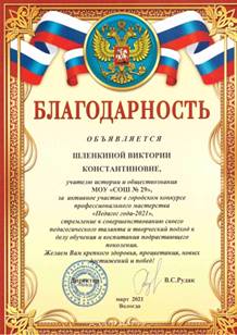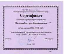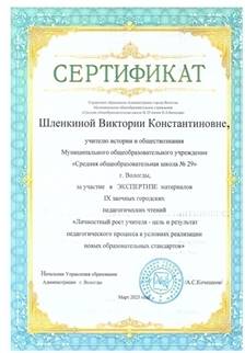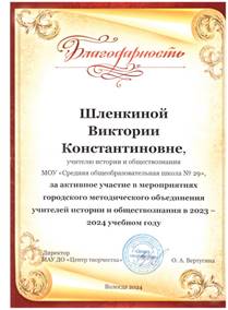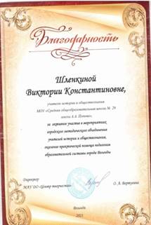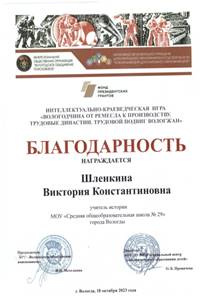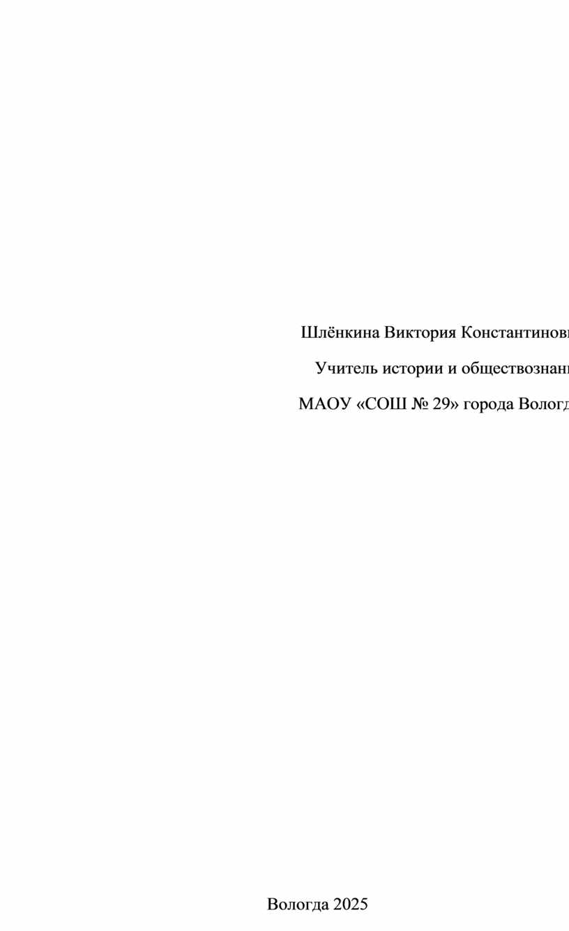 Шлёнкина Виктория Константиновна Учитель истории и обществознания МАОУ «СОШ № 29» города Вологды