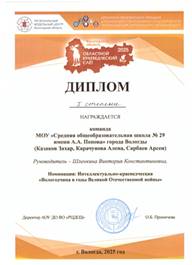 -Областная интеллектуально- краеведческая игра «Вологодская земля в годы Великой Отечественной войны» (организаторы РЦДОД и ВОП)