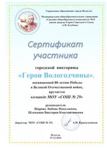 Городская викторина «Герои Вологодчины», посвящённая 80- летию Победы в Великой Отечественной войне» |