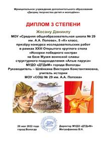 Участие Конкурсная работа на тему «Маршрут славы в Завокзальном микрорайоне города Вологды» |