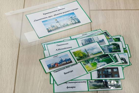 Для изучения технологии создания дидактических игр был пройден образовательный онлайн курс по разработке таких игр, как домино, тримино, пазлы, дубль, круговое домино. Полученные теоретические знания позволили постепенно начать работу по созданию собственных дидактических игр, наполняя их краеведческим материалом.