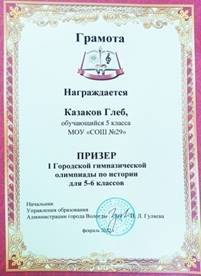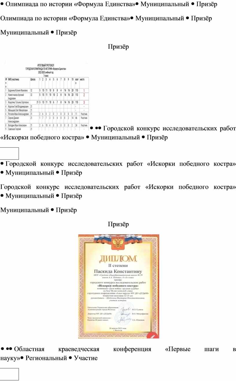 Член жюри муниципального этапа всероссийской олимпиады школьников по истории |