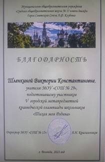 Член жюри муниципального этапа всероссийской олимпиады школьников |