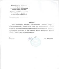 Член предметно- методической комиссии по разработке заданий муниципальной викторины, посвященной Ф.Ф.Ушакову |