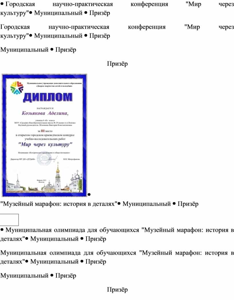 Открытый городской краеведческий конкурс учебно- исследовательских работ школьников «Мир через культуру» |