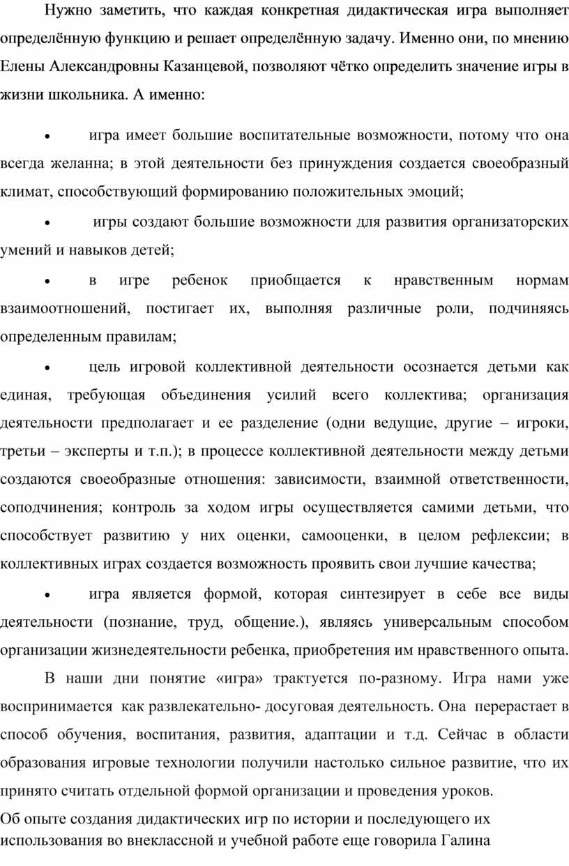 Нужно заметить, что каждая конкретная дидактическая игра выполняет определённую функцию и решает определённую задачу. Именно они, по мнению Елены Александровны Казанцевой, позволяют чётко определить значение игры в жизни школьника. А именно:
