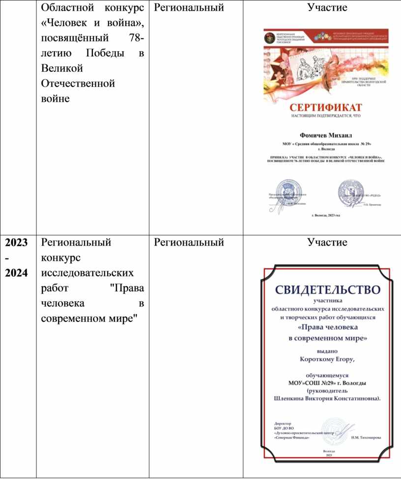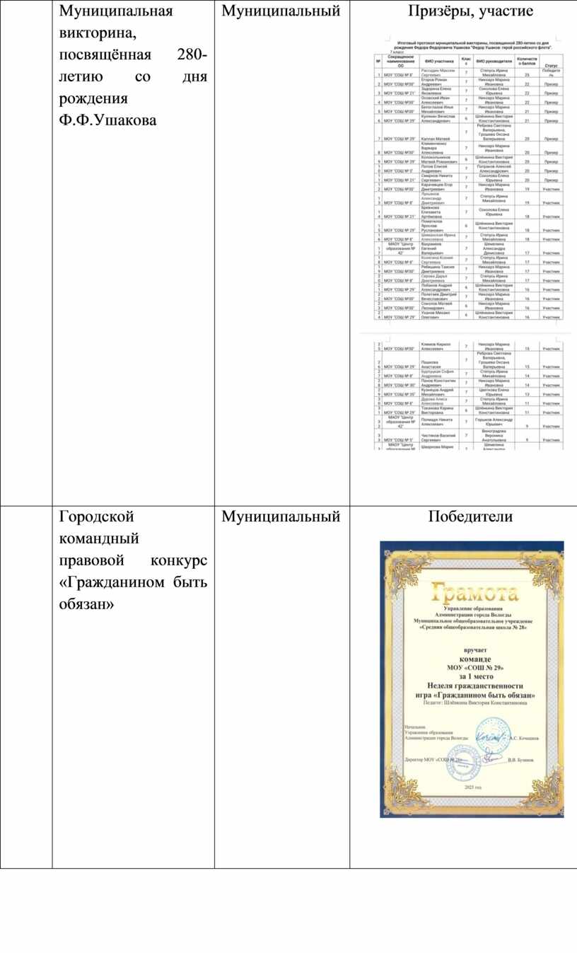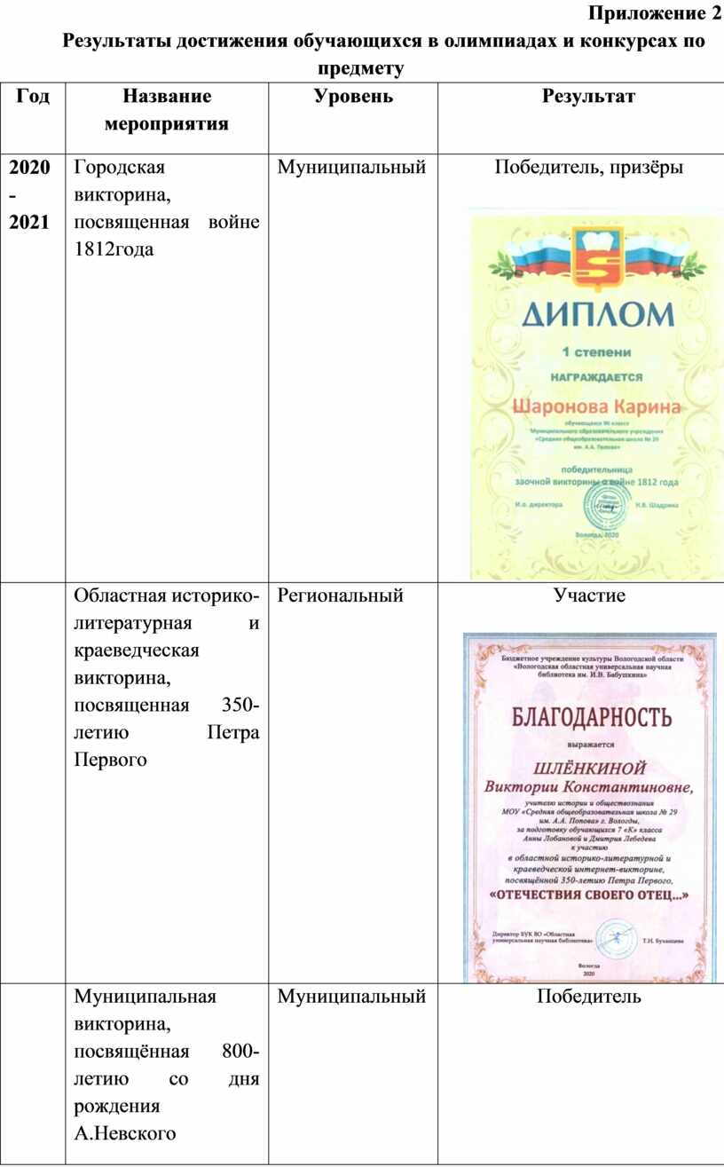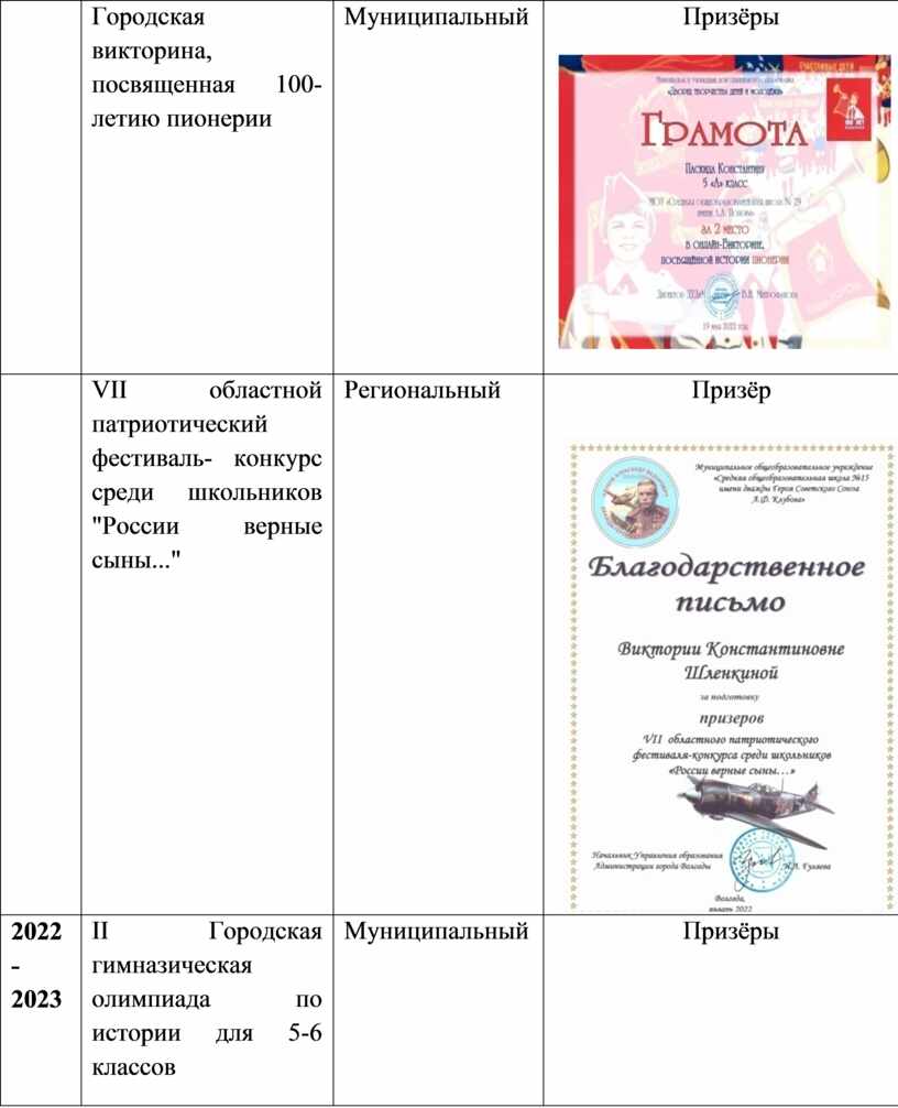 Результаты достижения обучающихся в конкурсах по краеведению