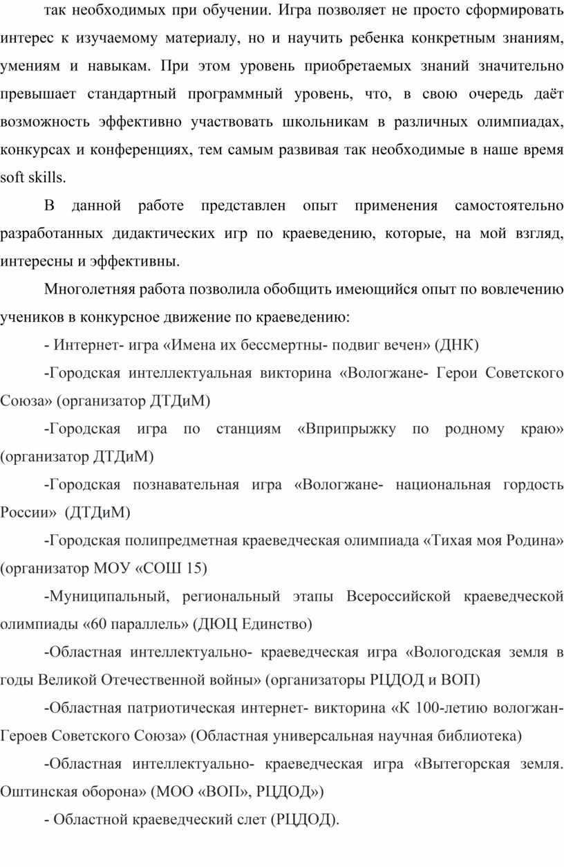 Вологда 2025 Содержание Введение…………………………………………………………..………..3 Часть 1.Теоретическая часть…………………………………………..…..7 Часть 2.Практическая часть. Создание краеведческой игротеки……..10 Часть 3.Результативность педагогической деятельности……….….….20 Заключение………………………………………………………….….…22 Список литературы……..………………………………………….….….23 Приложения…………………………………………….………............…24