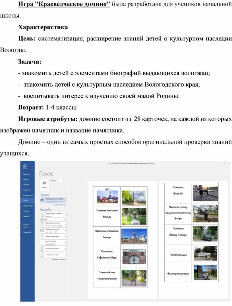 Игра "Краеведческое домино" была разработана для учеников начальной школы.