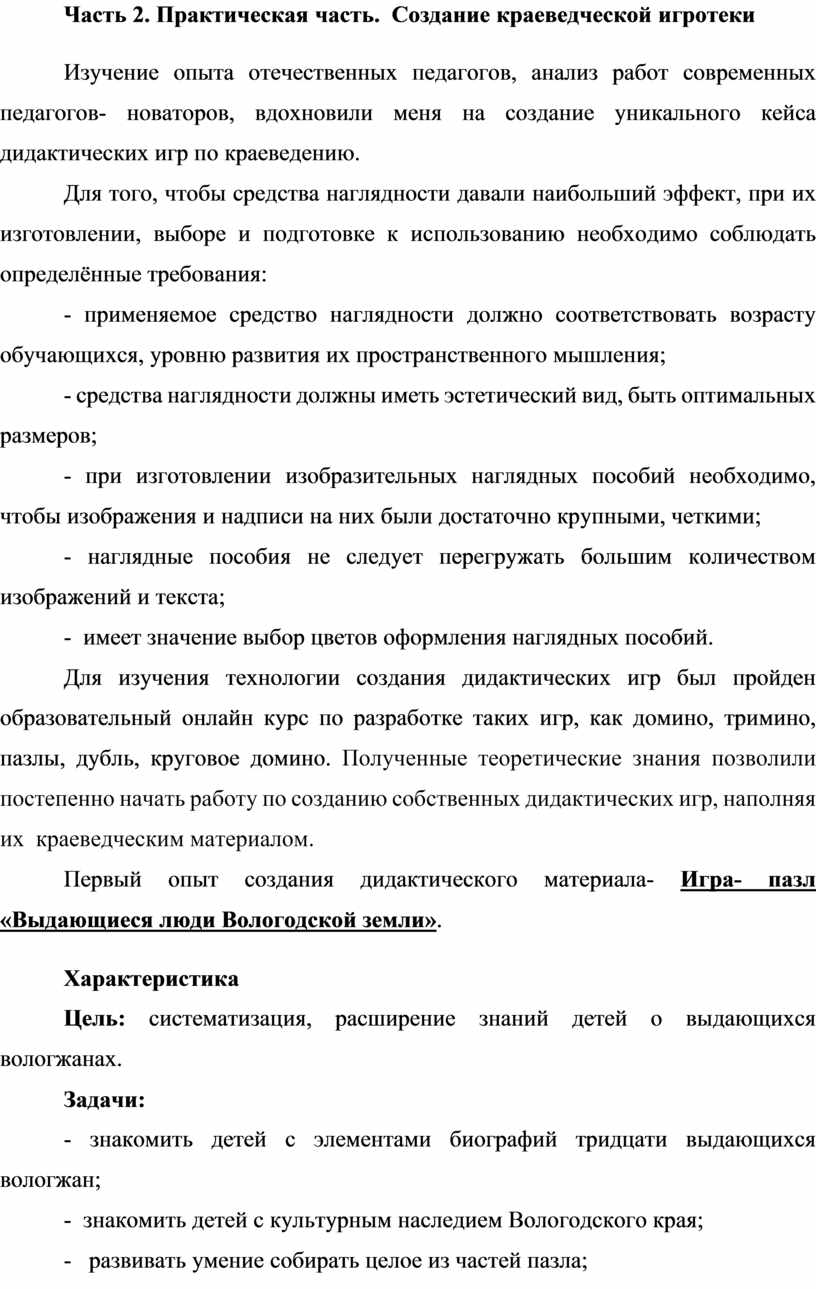 Часть 2. Практическая часть. Создание краеведческой игротеки