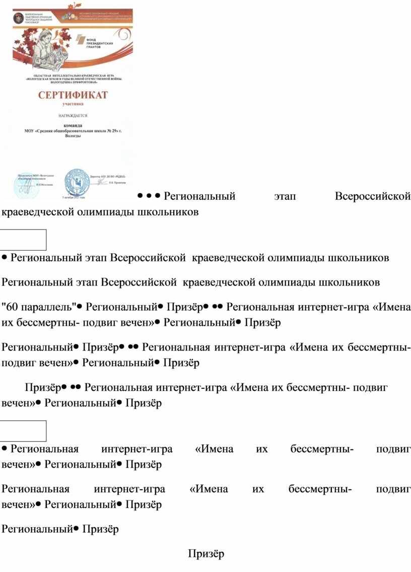 Региональный этап Всероссийской краеведческой олимпиады школьников "60 параллель" |