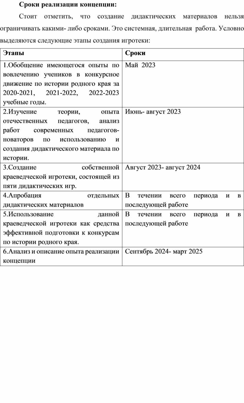 6.Анализ и описание опыта реализации концепции |