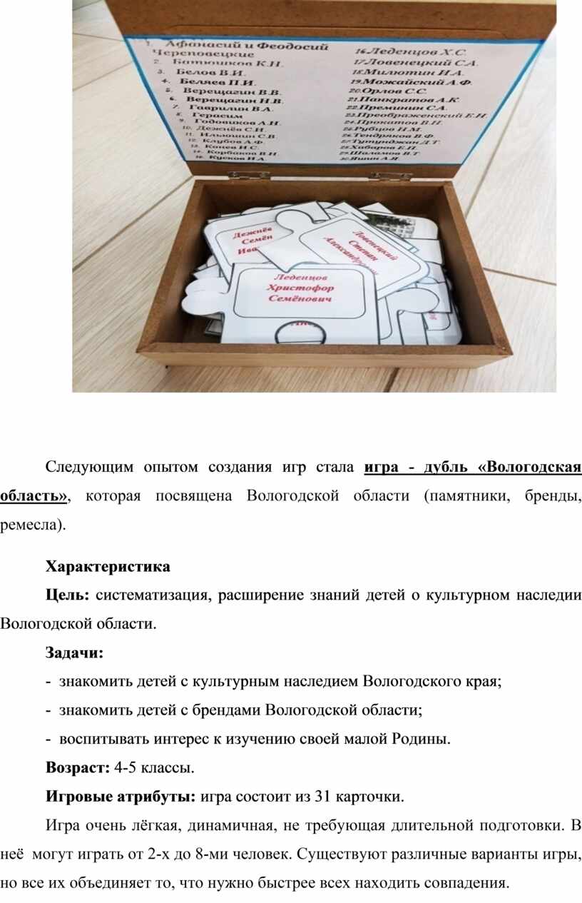 Изучение опыта отечественных педагогов, анализ работ современных педагогов- новаторов, вдохновили меня на создание уникального кейса дидактических игр по краеведению.