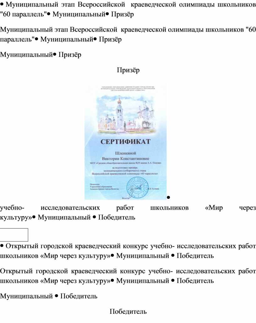 Муниципальный этап Всероссийской краеведческой олимпиады школьников "60 параллель" |
