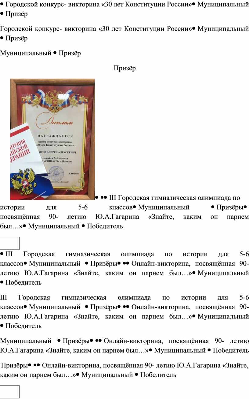 Призёры, участие