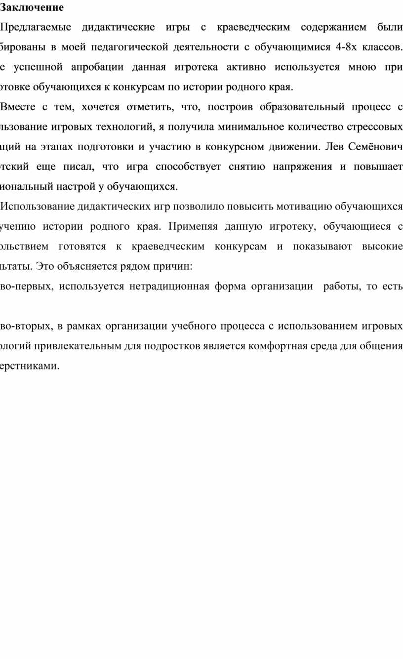 «Дидактические игры по краеведению как средство подготовки к конкурсам по истории родного края»
