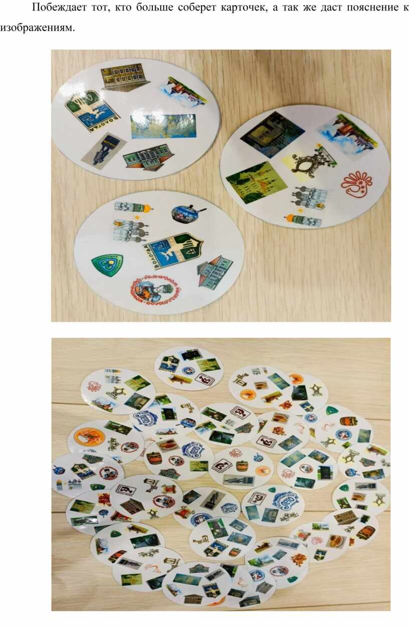 Побеждает тот, кто больше соберет карточек, а так же даст пояснение к изображениям.