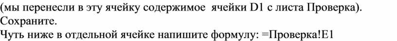 (мы перенесли в эту ячейку содержимое ячейки D1 с листа Проверка). Сохраните.