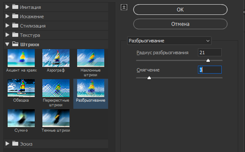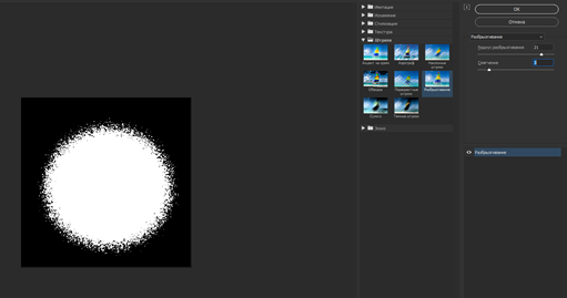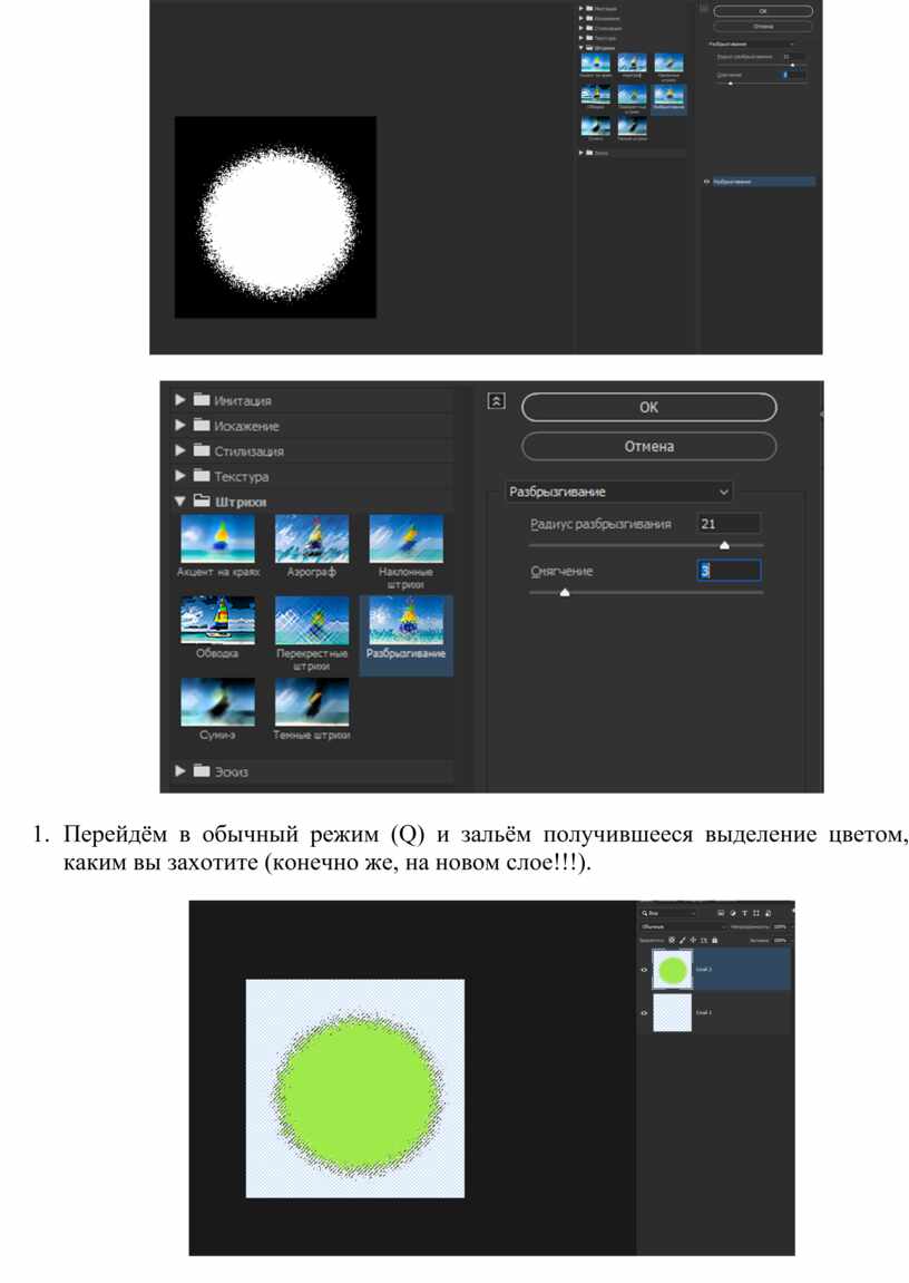 2. Теперь перейдём в режим «быстрой маски» или просто нажмём Q. Выберем Фильтр-Галерея фильтров-Штрихи-Разбрызгивание (Filter-Brush Strokes-Spatter).