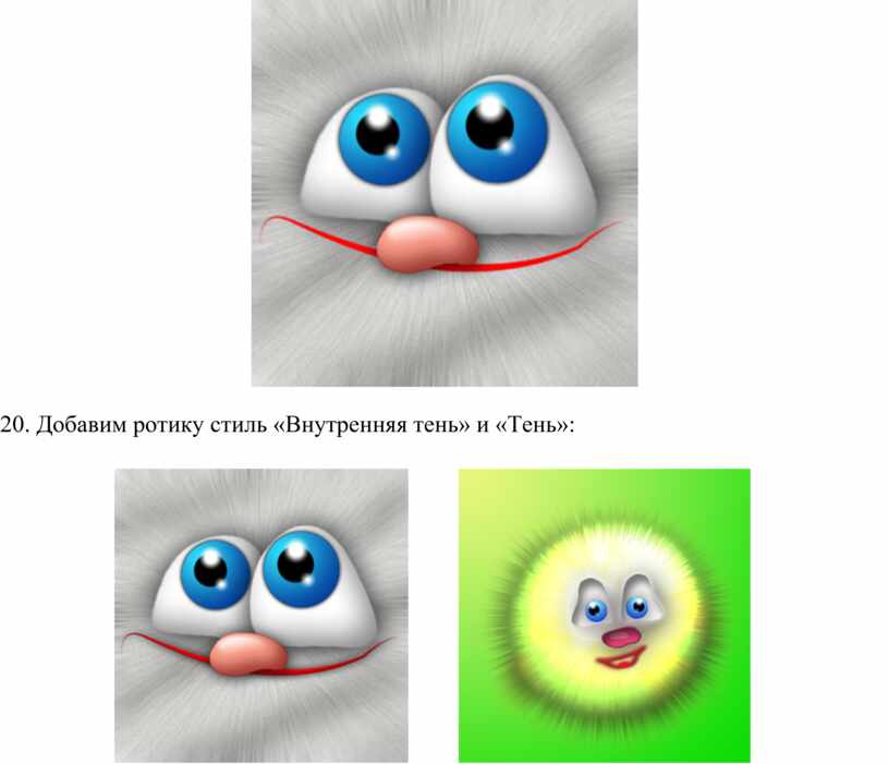 20. Добавим ротику стиль «Внутренняя тень» и «Тень»: