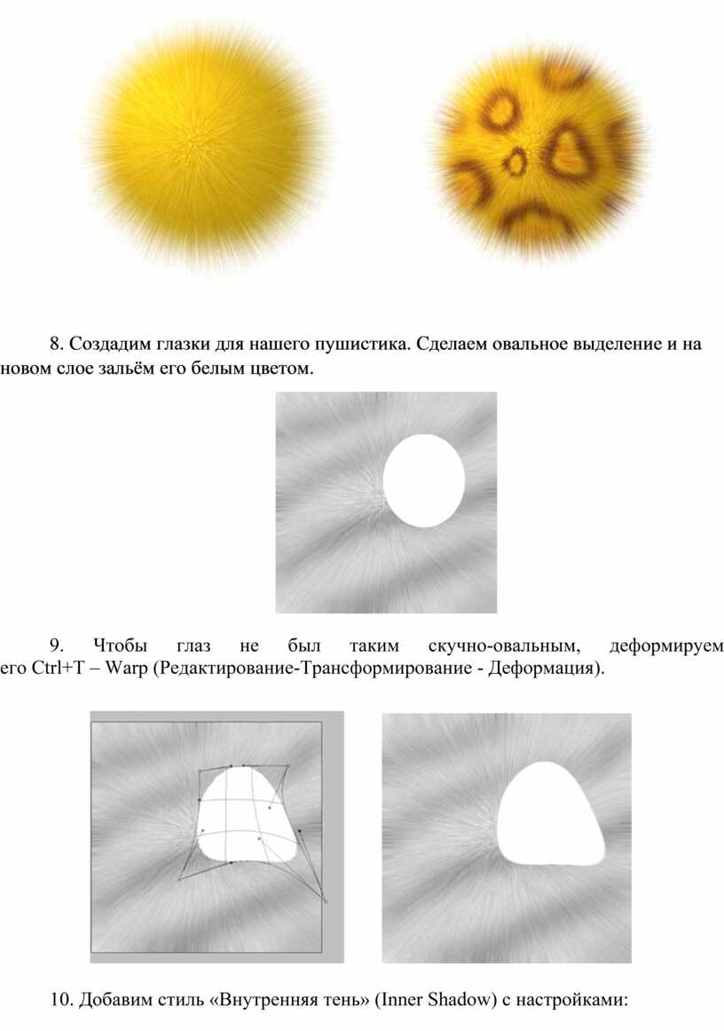 8. Создадим глазки для нашего пушистика. Сделаем овальное выделение и на новом слое зальём его белым цветом.