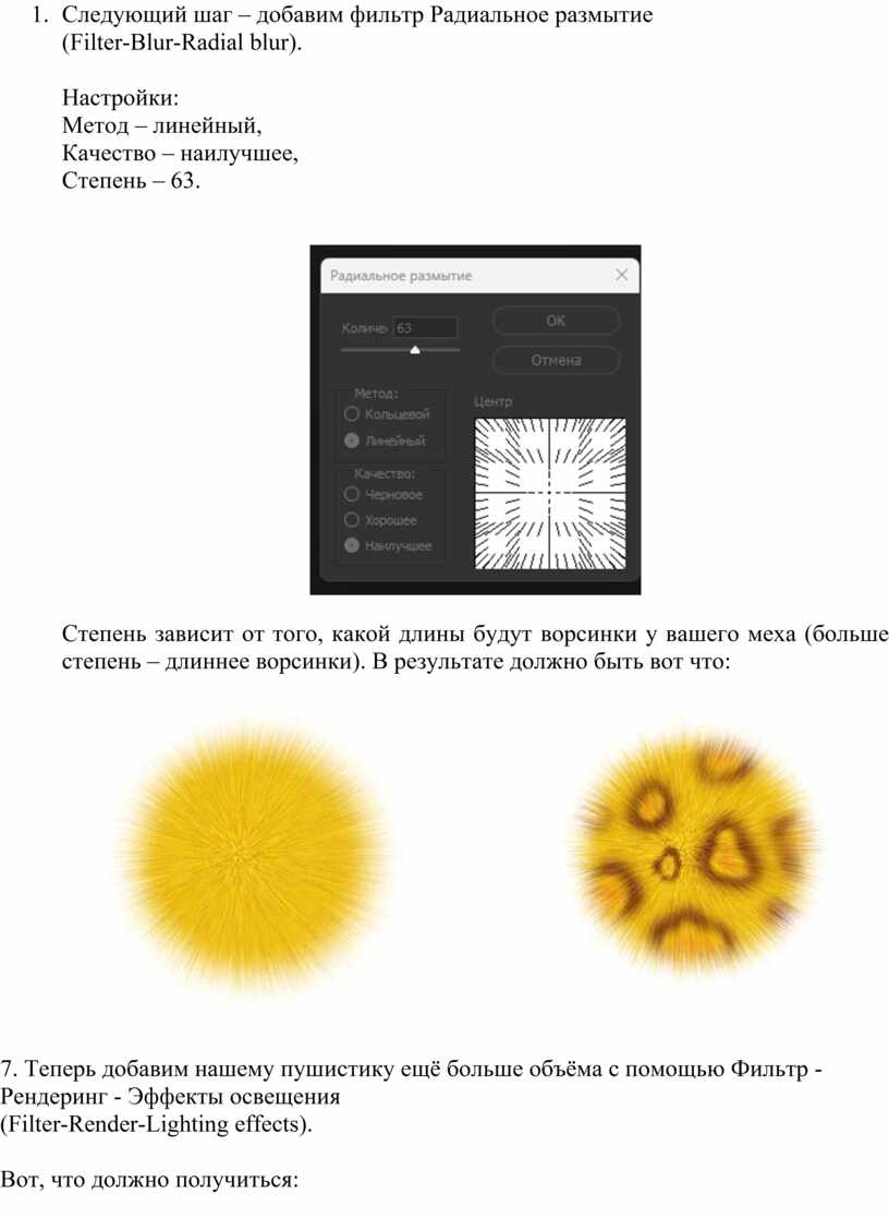 Степень зависит от того, какой длины будут ворсинки у вашего меха (больше степень – длиннее ворсинки). В результате должно быть вот что: